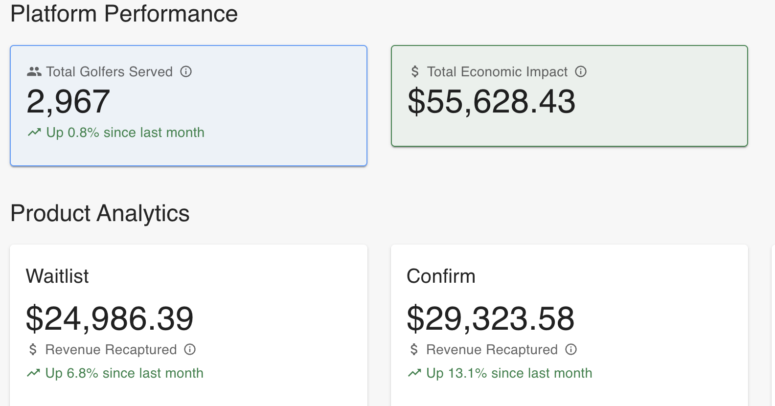 This golf course waitlist company wanted to modernize their admin dashboard with analytics and reporting that proved their value to their clients.